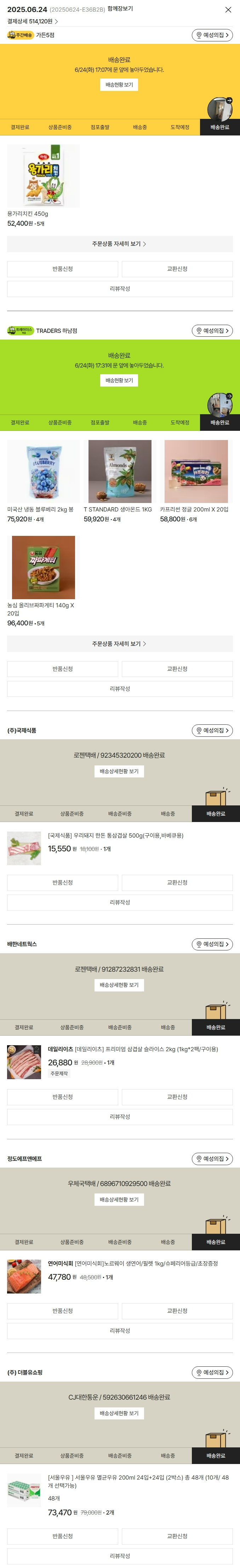 가격상승분 195원, 100원 미만 지원금 25원, SSG 머니 7,000포인트, 기타 사업비는 행복나눔재단이 부담했습니다. (기부후기 발송시점에 최종 업데이트 됩니다.) 실제 쇼핑몰에서 확인되는 배송현황을 캡처한 내용입니다. 실시간 자료와는 차이가 있을 수 있습니다.