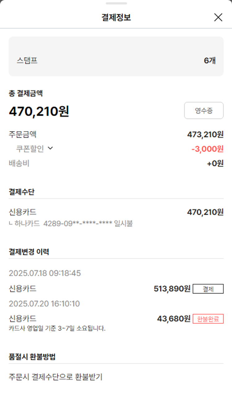 기부자님이 사용한 기부포인트 9,100원, 물품배송비 3,000원, 가격상승분 13,910원, 100원 미만 지원금 90원, 결제 수수료 10,540원, 기타 사업비는 행복나눔재단이 부담했습니다. (기부후기 발송시점에 최종 업데이트 됩니다.) 상품 주문 건 중 품절 발생하여 2025-07-21 재주문하였습니다. 실제 쇼핑몰에서 확인되는 배송현황을 캡처한 내용입니다. 실시간 자료와는 차이가 있을 수 있습니다.