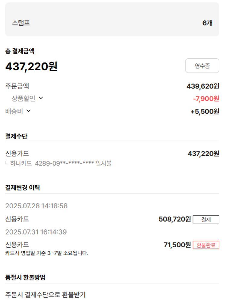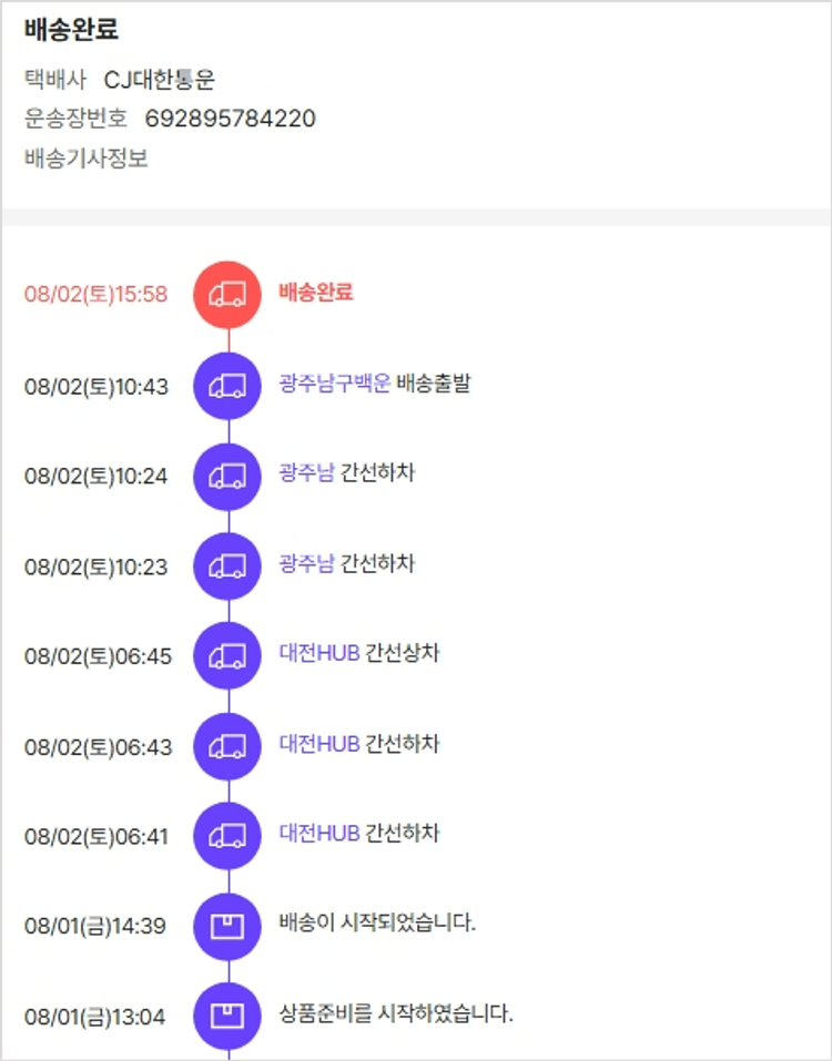 기부자님이 사용한 기부포인트 9,900원, 물품배송비 5,500원, 가격상승분 17,820원, 100원 미만 지원금 60원, 결제 수수료 10,922원, 기타 사업비는 행복나눔재단이 부담했습니다. (기부후기 발송시점에 최종 업데이트 됩니다.) 상품 주문 건 중 품절 발생하여 2025-08-01 재주문하였습니다. 실제 쇼핑몰에서 확인되는 배송현황을 캡처한 내용입니다. 실시간 자료와는 차이가 있을 수 있습니다.