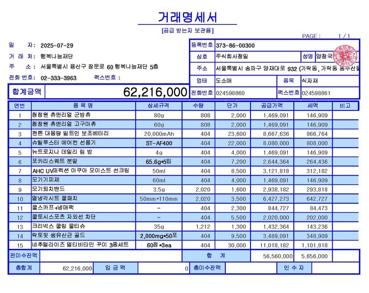 * 배송비 등 추가비용 발생시 행복나눔재단 이 부담합니다.