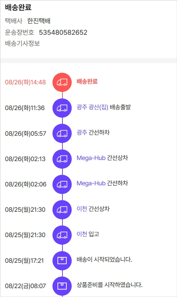 기부자님이 사용한 기부포인트 2,100원, 물품배송비 7,000원, 가격상승분 6,540원, 100원 미만 지원금 90원, 결제 수수료 11,216원, 기타 사업비는 행복나눔재단이 부담했습니다. (기부후기 발송시점에 최종 업데이트 됩니다.) 실제 쇼핑몰에서 확인되는 배송현황을 캡처한 내용입니다. 실시간 자료와는 차이가 있을 수 있습니다.