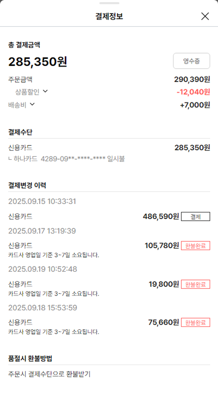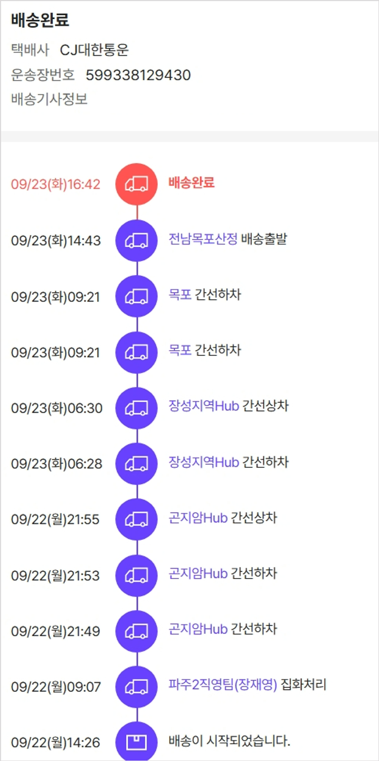 기부자님이 사용한 기부포인트 42,650원, 물품배송비 7,000원, 가격상승분 14,560원, 100원 미만 지원금 90원, 결제 수수료 9,746원, 기타 사업비는 행복나눔재단이 부담했습니다. (기부후기 발송시점에 최종 업데이트 됩니다.) 상품 주문 건 중 품절 발생하여 2025-09-22 재주문하였습니다. 실제 쇼핑몰에서 확인되는 배송현황을 캡처한 내용입니다. 실시간 자료와는 차이가 있을 수 있습니다.
