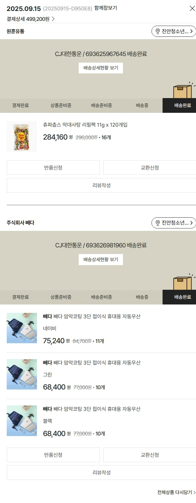 기부자님이 사용한 기부포인트 39,500원, 물품배송비 3,000원, 가격상승분 3,850원, 100원 미만 지원금 50원, 결제 수수료 10,195원, 기타 사업비는 행복나눔재단이 부담했습니다. (기부후기 발송시점에 최종 업데이트 됩니다.) 실제 쇼핑몰에서 확인되는 배송현황을 캡처한 내용입니다. 실시간 자료와는 차이가 있을 수 있습니다.