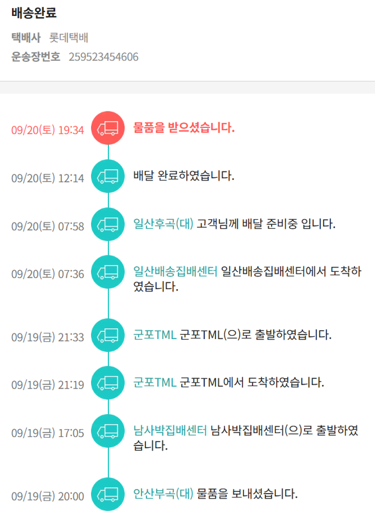 기부자님이 사용한 기부포인트 6,000원, 물품배송비 3,000원, 가격상승분 984원, 100원 미만 지원금 90원, 결제 수수료 10,655원, 기타 사업비는 행복나눔재단이 부담했습니다. (기부후기 발송시점에 최종 업데이트 됩니다.) 상품 주문 건 중 품절 발생하여 2025-09-18 재주문하였습니다. 실제 쇼핑몰에서 확인되는 배송현황을 캡처한 내용입니다. 실시간 자료와는 차이가 있을 수 있습니다.
