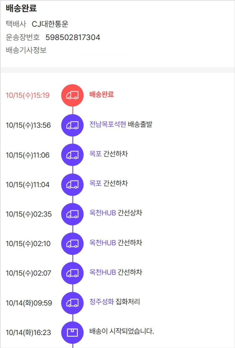 기부자님이 사용한 기부포인트 7,150원, 결제 수수료 11,132원, 기타 사업비는 행복나눔재단이 부담했습니다. (기부후기 발송시점에 최종 업데이트 됩니다.) 실제 쇼핑몰에서 확인되는 배송현황을 캡처한 내용입니다. 실시간 자료와는 차이가 있을 수 있습니다.