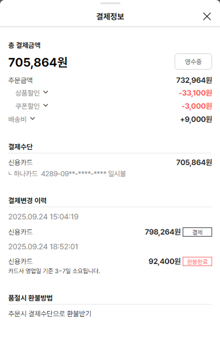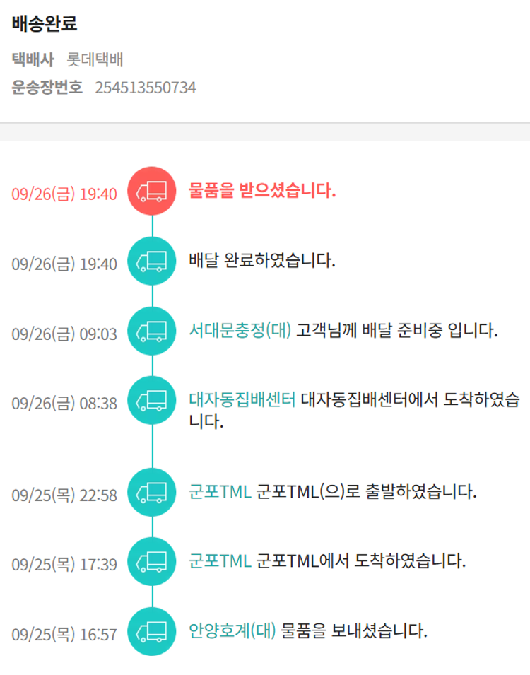 기부자님이 사용한 기부포인트 16,100원, 물품배송비 12,000원, 가격상승분 10,344원, 결제 수수료 17,521원, 기타 사업비는 행복나눔재단이 부담했습니다. (기부후기 발송시점에 최종 업데이트 됩니다.) 상품 주문 건 중 품절 발생하여 2025-09-25 재주문하였습니다. 실제 쇼핑몰에서 확인되는 배송현황을 캡처한 내용입니다. 실시간 자료와는 차이가 있을 수 있습니다.
