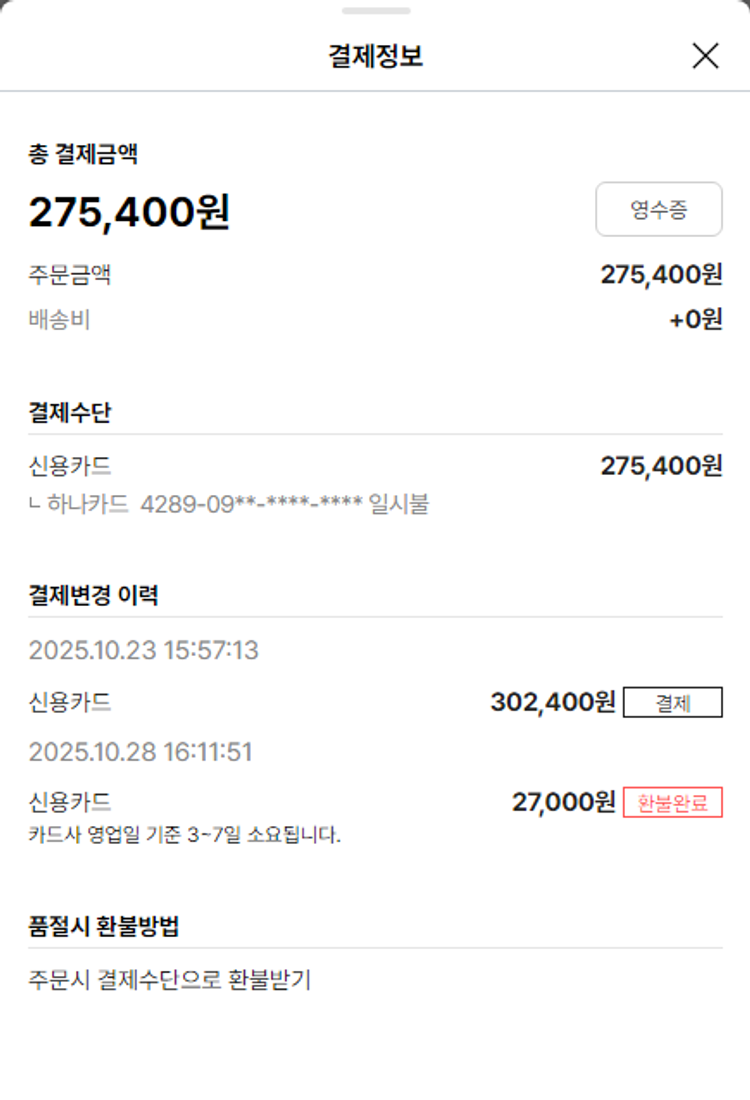 가격상승분 17,440원, 기타 사업비는 행복나눔재단이 부담했습니다. (기부후기 발송시점에 최종 업데이트 됩니다.) 상품 주문 건 중 품절 발생하여 2025-10-31 재주문하였습니다. 실제 쇼핑몰에서 확인되는 배송현황을 캡처한 내용입니다. 실시간 자료와는 차이가 있을 수 있습니다.