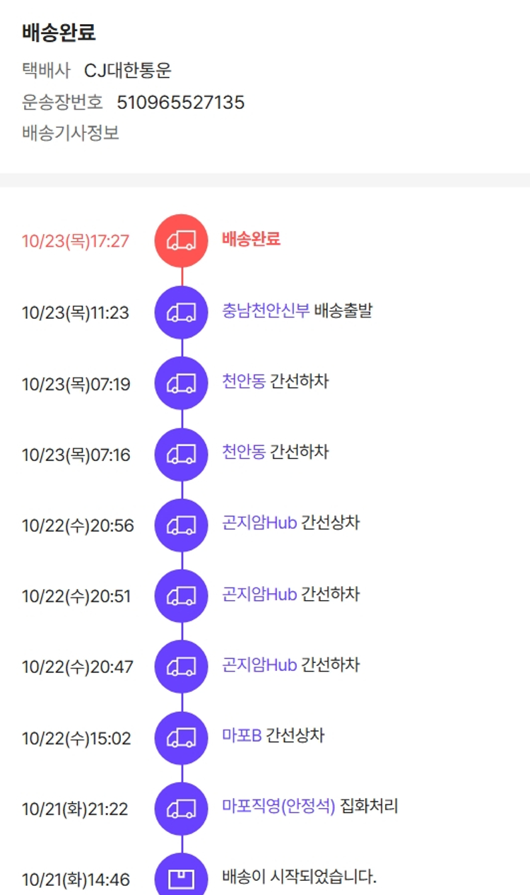 기부자님이 사용한 기부포인트 11,100원, 가격상승분 8,970원, 결제 수수료 10,800원, 기타 사업비는 행복나눔재단이 부담했습니다. (기부후기 발송시점에 최종 업데이트 됩니다.) 실제 쇼핑몰에서 확인되는 배송현황을 캡처한 내용입니다. 실시간 자료와는 차이가 있을 수 있습니다.