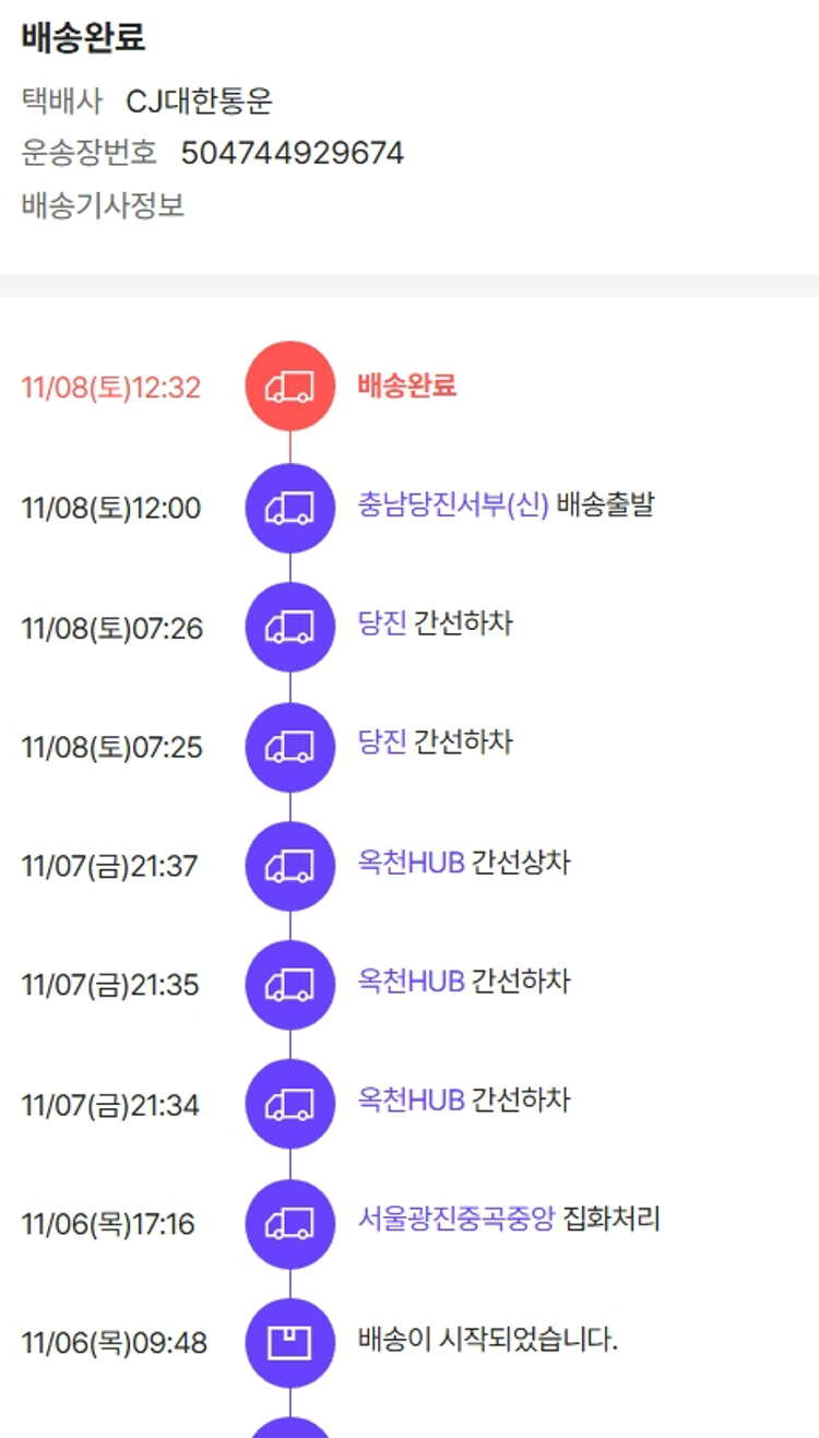 기부자님이 사용한 기부포인트 11,450원, 물품배송비 4,000원, 가격상승분 3,300원, 100원 미만 지원금 80원, 결제 수수료 10,577원, 기타 사업비는 행복나눔재단이 부담했습니다. (기부후기 발송시점에 최종 업데이트 됩니다.) 실제 쇼핑몰에서 확인되는 배송현황을 캡처한 내용입니다. 실시간 자료와는 차이가 있을 수 있습니다.