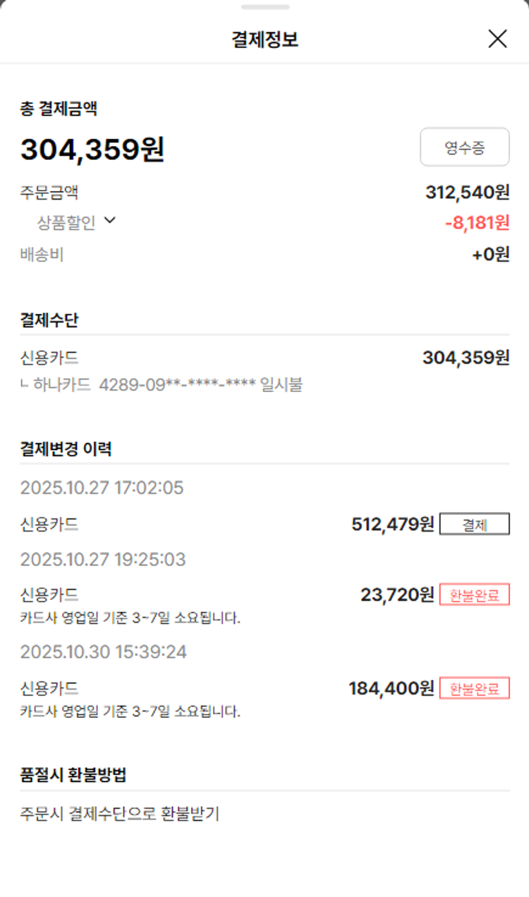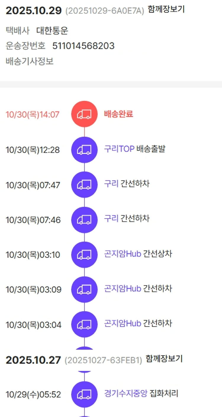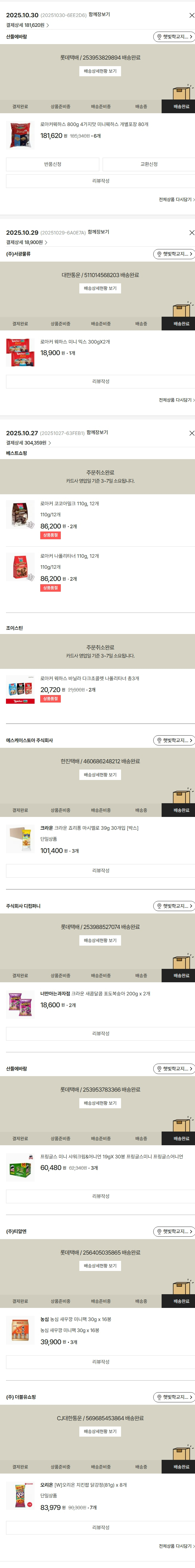 가격상승분 9,877원, 100원 미만 지원금 2원, 기타 사업비는 행복나눔재단이 부담했습니다. (기부후기 발송시점에 최종 업데이트 됩니다.) 상품 주문 건 중 품절 발생하여 2025-10-30 재주문하였습니다. 실제 쇼핑몰에서 확인되는 배송현황을 캡처한 내용입니다. 실시간 자료와는 차이가 있을 수 있습니다.
