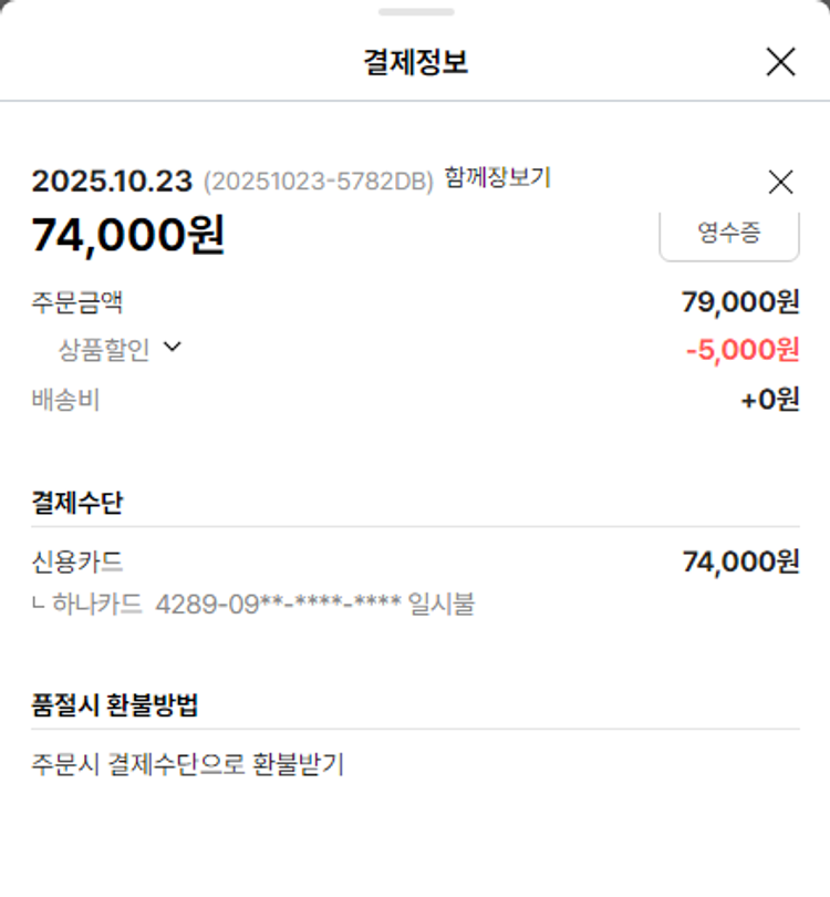 가격상승분 1,320원, 100원 미만 지원금 60원, 기타 사업비는 행복나눔재단이 부담했습니다. (기부후기 발송시점에 최종 업데이트 됩니다.) 상품 주문 건 중 품절 발생하여 2025-10-30 재주문하였습니다. 실제 쇼핑몰에서 확인되는 배송현황을 캡처한 내용입니다. 실시간 자료와는 차이가 있을 수 있습니다.