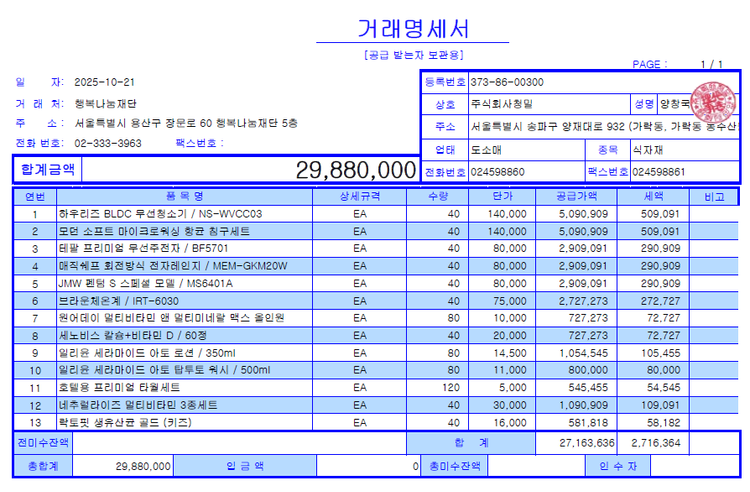 - 기타 발생하는 모든 비용은 행복나눔재단이 부담해요. (배송비, 수수료 등)