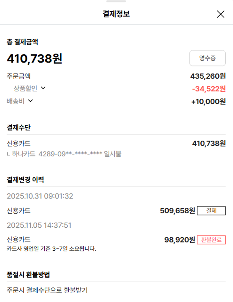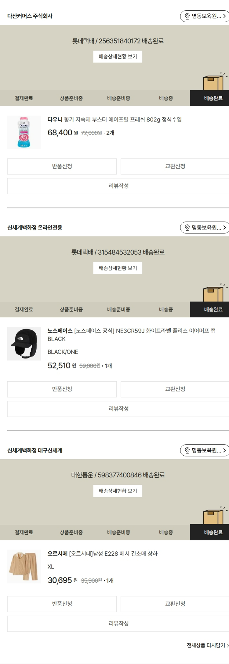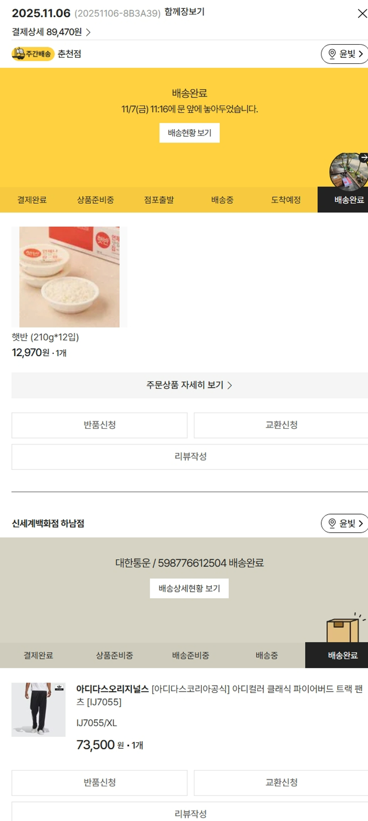 기부자님이 사용한 기부포인트 8,000원, 물품배송비 13,000원, 가격상승분 2,818원, 100원 미만 지원금 90원, 결제 수수료 13,928원, 기타 사업비는 행복나눔재단이 부담했습니다. (기부후기 발송시점에 최종 업데이트 됩니다.) 상품 주문 건 중 품절 발생하여 2025-11-06 재주문하였습니다. 실제 쇼핑몰에서 확인되는 배송현황을 캡처한 내용입니다. 실시간 자료와는 차이가 있을 수 있습니다.