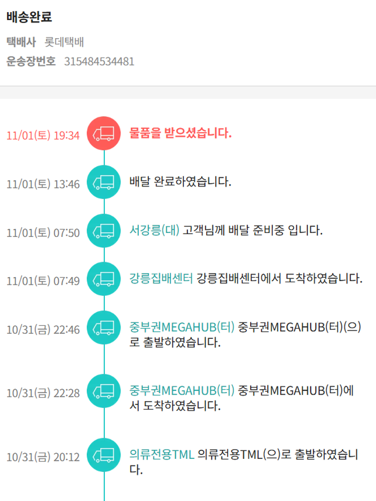 물품배송비 3,500원, 가격상승분 7,804원, 100원 미만 지원금 66원, 기타 사업비는 행복나눔재단이 부담했습니다. (기부후기 발송시점에 최종 업데이트 됩니다.) 상품 주문 건 중 품절 발생하여 2025-10-31 재주문하였습니다. 실제 쇼핑몰에서 확인되는 배송현황을 캡처한 내용입니다. 실시간 자료와는 차이가 있을 수 있습니다.