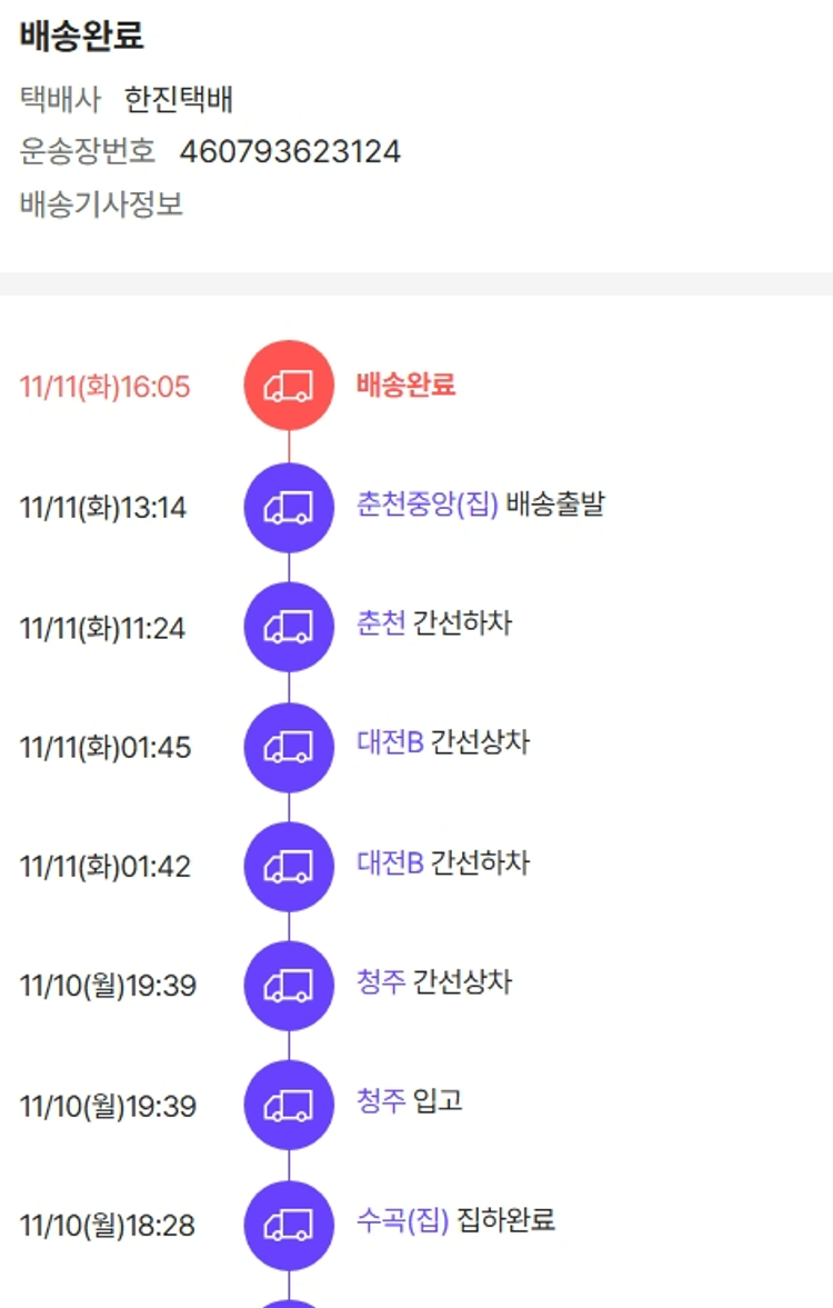 기부자님이 사용한 기부포인트 15,950원, 물품배송비 10,500원, 가격상승분 6,770원, 100원 미만 지원금 70원, 결제 수수료 10,211원, 기타 사업비는 행복나눔재단이 부담했습니다. (기부후기 발송시점에 최종 업데이트 됩니다.) 실제 쇼핑몰에서 확인되는 배송현황을 캡처한 내용입니다. 실시간 자료와는 차이가 있을 수 있습니다.