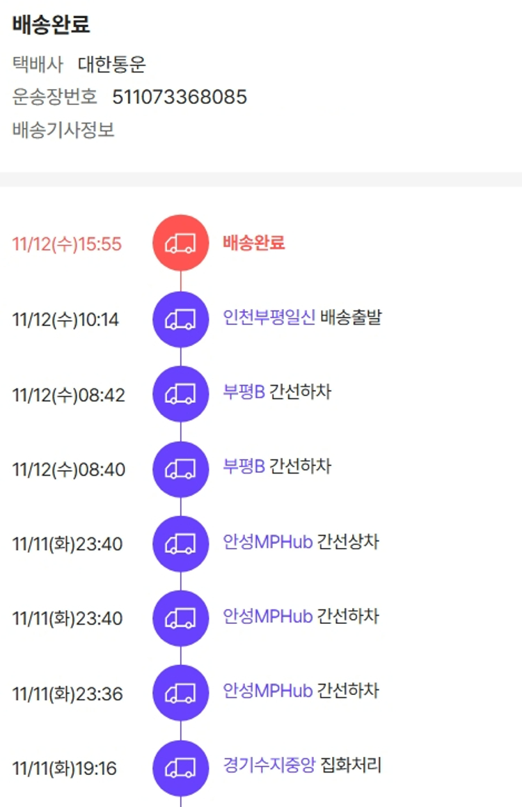 기부자님이 사용한 기부포인트 7,500원, 물품배송비 6,500원, 가격상승분 6,430원, 100원 미만 지원금 80원, 결제 수수료 11,204원, 기타 사업비는 행복나눔재단이 부담했습니다. (기부후기 발송시점에 최종 업데이트 됩니다.) 실제 쇼핑몰에서 확인되는 배송현황을 캡처한 내용입니다. 실시간 자료와는 차이가 있을 수 있습니다.