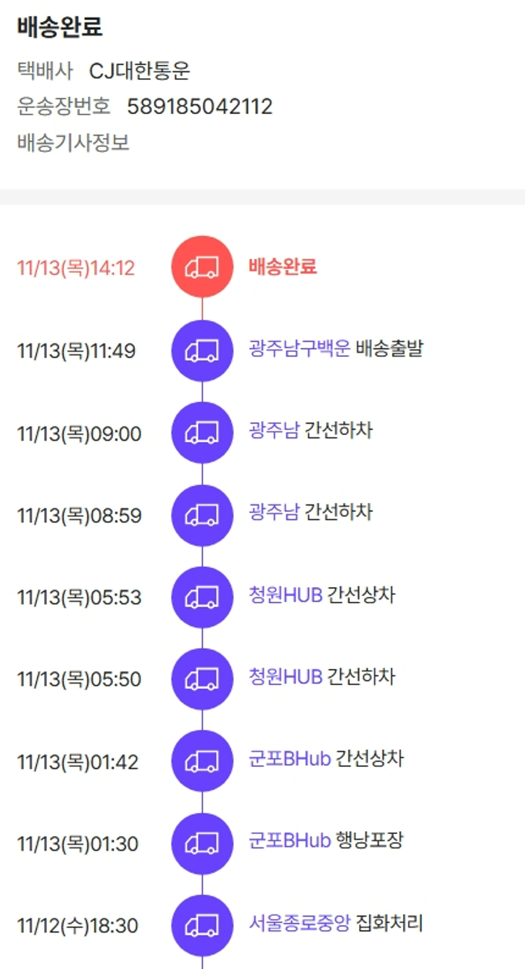 기부자님이 사용한 기부포인트 12,250원, 물품배송비 3,500원, 가격상승분 2,389원, 100원 미만 지원금 82원, 결제 수수료 11,436원, 기타 사업비는 행복나눔재단이 부담했습니다. (기부후기 발송시점에 최종 업데이트 됩니다.) 실제 쇼핑몰에서 확인되는 배송현황을 캡처한 내용입니다. 실시간 자료와는 차이가 있을 수 있습니다.