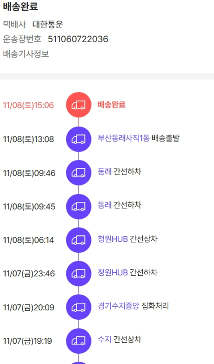 가격상승분 2,781원, 100원 미만 지원금 59원, 결제 수수료 11,741원, 기타 사업비는 행복나눔재단이 부담했습니다. (기부후기 발송시점에 최종 업데이트 됩니다.) 실제 쇼핑몰에서 확인되는 배송현황을 캡처한 내용입니다. 실시간 자료와는 차이가 있을 수 있습니다.