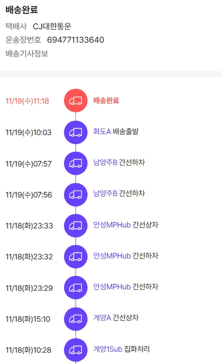 기부자님이 사용한 기부포인트 3,400원, 물품배송비 3,000원, 가격상승분 4,692원, 100원 미만 지원금 50원, 결제 수수료 10,687원, 기타 사업비는 행복나눔재단이 부담했습니다. (기부후기 발송시점에 최종 업데이트 됩니다.) 실제 쇼핑몰에서 확인되는 배송현황을 캡처한 내용입니다. 실시간 자료와는 차이가 있을 수 있습니다.