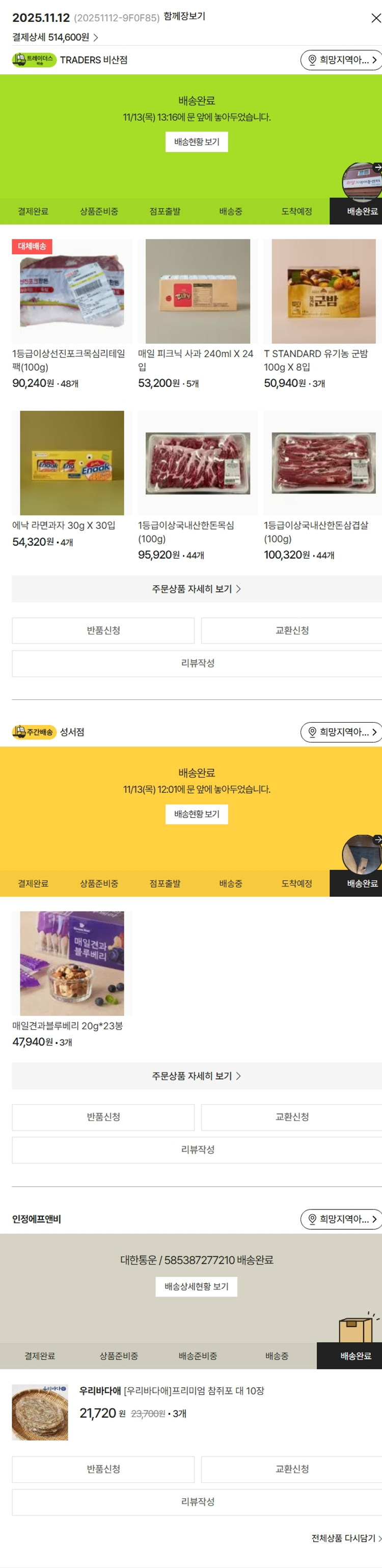 기부자님이 사용한 기부포인트 6,700원, 가격상승분 15,010원, 100원 미만 지원금 90원, 결제 수수료 10,783원, 기타 사업비는 행복나눔재단이 부담했습니다. (기부후기 발송시점에 최종 업데이트 됩니다.) 실제 쇼핑몰에서 확인되는 배송현황을 캡처한 내용입니다. 실시간 자료와는 차이가 있을 수 있습니다.