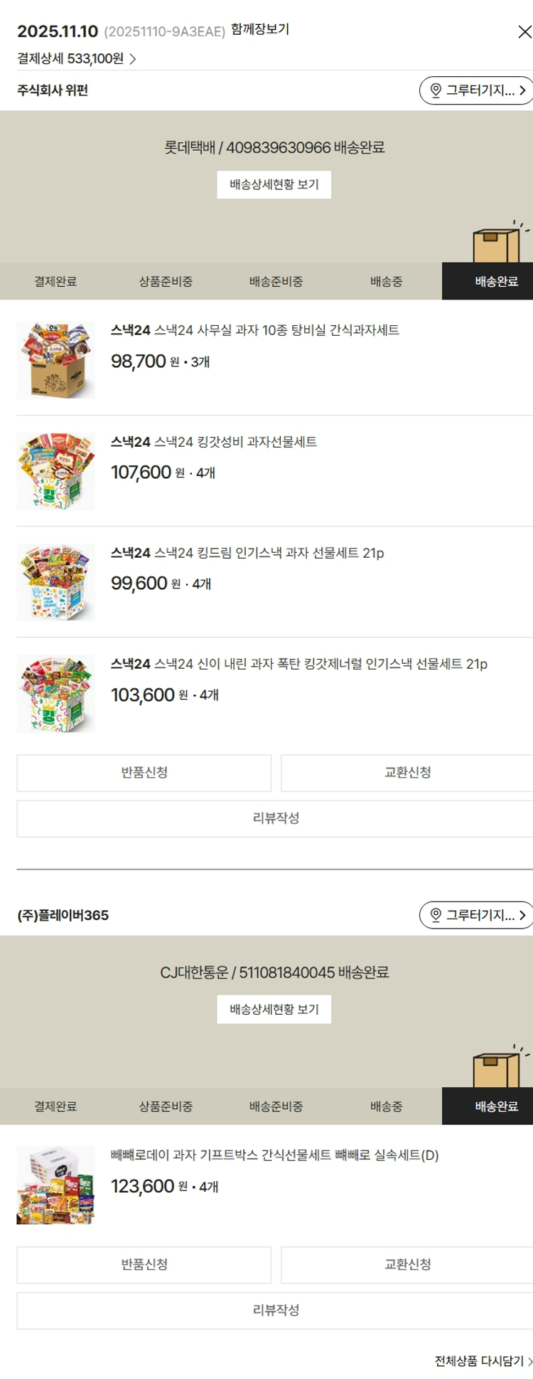 결제 수수료 11,984원, 기타 사업비는 행복나눔재단이 부담했습니다. (기부후기 발송시점에 최종 업데이트 됩니다.) 실제 쇼핑몰에서 확인되는 배송현황을 캡처한 내용입니다. 실시간 자료와는 차이가 있을 수 있습니다.
