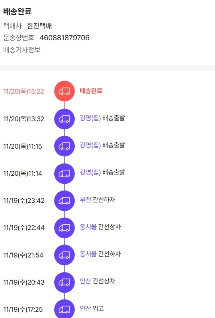 기부자님이 사용한 기부포인트 5,000원, 물품배송비 9,000원, 가격상승분 4,964원, 100원 미만 지원금 86원, 결제 수수료 10,628원, 기타 사업비는 행복나눔재단이 부담했습니다. (기부후기 발송시점에 최종 업데이트 됩니다.) 실제 쇼핑몰에서 확인되는 배송현황을 캡처한 내용입니다. 실시간 자료와는 차이가 있을 수 있습니다.