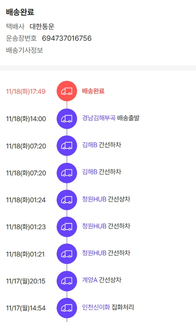 기부자님이 사용한 기부포인트 18,000원, 물품배송비 6,000원, 결제 수수료 11,133원, 기타 사업비는 행복나눔재단이 부담했습니다. (기부후기 발송시점에 최종 업데이트 됩니다.) 실제 쇼핑몰에서 확인되는 배송현황을 캡처한 내용입니다. 실시간 자료와는 차이가 있을 수 있습니다.