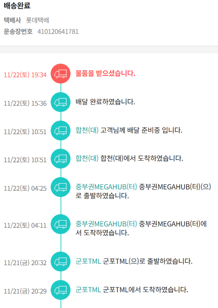기부자님이 사용한 기부포인트 4,000원, 가격상승분 7,700원, 결제 수수료 10,660원, 기타 사업비는 행복나눔재단이 부담했습니다. (기부후기 발송시점에 최종 업데이트 됩니다.) 실제 쇼핑몰에서 확인되는 배송현황을 캡처한 내용입니다. 실시간 자료와는 차이가 있을 수 있습니다.