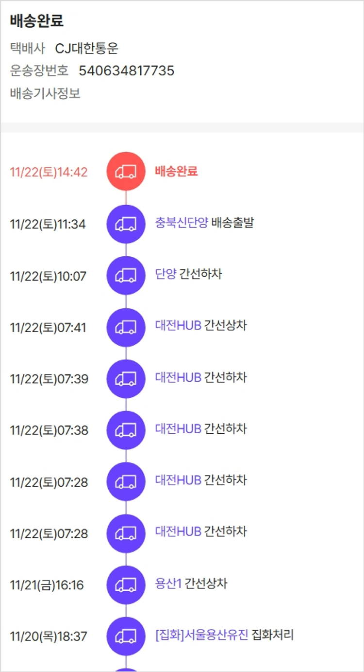 가격상승분 4,439원, 100원 미만 지원금 96원, 기타 사업비는 행복나눔재단이 부담했습니다. (기부후기 발송시점에 최종 업데이트 됩니다.) 실제 쇼핑몰에서 확인되는 배송현황을 캡처한 내용입니다. 실시간 자료와는 차이가 있을 수 있습니다.