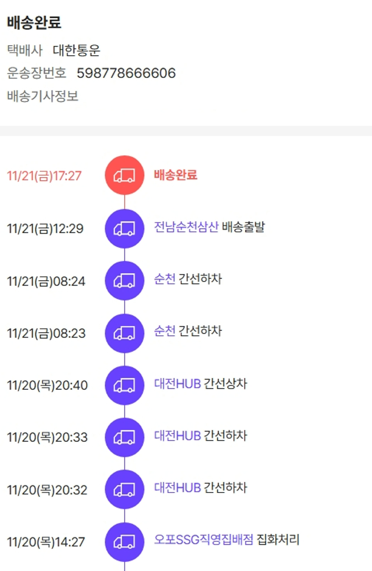 기부자님이 사용한 기부포인트 37,450원, 가격상승분 618원, 결제 수수료 7,166원, 기타 사업비는 행복나눔재단이 부담했습니다. (기부후기 발송시점에 최종 업데이트 됩니다.) 실제 쇼핑몰에서 확인되는 배송현황을 캡처한 내용입니다. 실시간 자료와는 차이가 있을 수 있습니다.