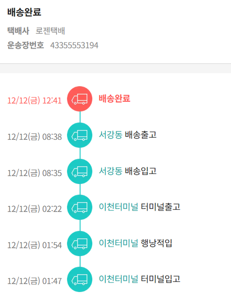 기부자님이 사용한 기부포인트 2,000원, 물품배송비 2,700원, 가격상승분 6,250원, 100원 미만 지원금 30원, 결제 수수료 11,739원, 기타 사업비는 행복나눔재단이 부담했습니다. (기부후기 발송시점에 최종 업데이트 됩니다.) 실제 쇼핑몰에서 확인되는 배송현황을 캡처한 내용입니다. 실시간 자료와는 차이가 있을 수 있습니다.