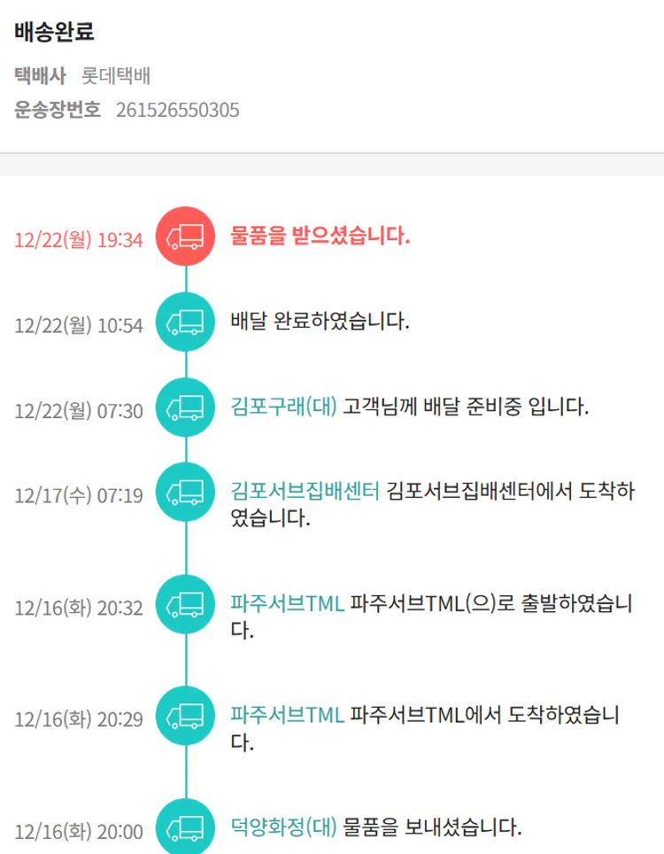 기부자님이 사용한 기부포인트 100원, 물품배송비 3,000원, 가격상승분 190원, 100원 미만 지원금 70원, 결제 수수료 10,029원, 기타 사업비는 행복나눔재단이 부담했습니다. (기부후기 발송시점에 최종 업데이트 됩니다.) 실제 쇼핑몰에서 확인되는 배송현황을 캡처한 내용입니다. 실시간 자료와는 차이가 있을 수 있습니다.