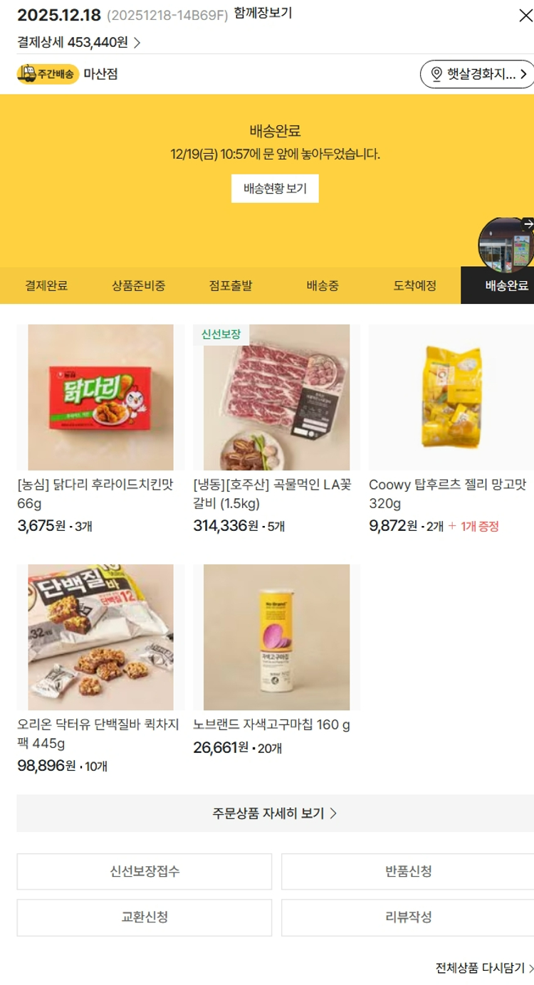 기부자님이 사용한 기부포인트 2,700원, 100원 미만 지원금 40원, 결제 수수료 12,399원, 기타 사업비는 행복나눔재단이 부담했습니다. (기부후기 발송시점에 최종 업데이트 됩니다.) 실제 쇼핑몰에서 확인되는 배송현황을 캡처한 내용입니다. 실시간 자료와는 차이가 있을 수 있습니다.