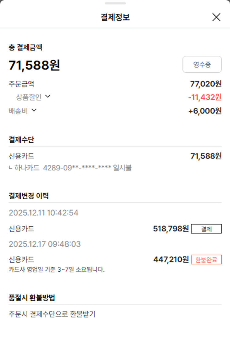 기부자님이 사용한 기부포인트 8,900원, 물품배송비 6,000원, 가격상승분 11,198원, 100원 미만 지원금 90원, 결제 수수료 10,805원, 기타 사업비는 행복나눔재단이 부담했습니다. (기부후기 발송시점에 최종 업데이트 됩니다.) 상품 주문 건 중 품절 발생하여 2025-12-17 재주문하였습니다. 실제 쇼핑몰에서 확인되는 배송현황을 캡처한 내용입니다. 실시간 자료와는 차이가 있을 수 있습니다.