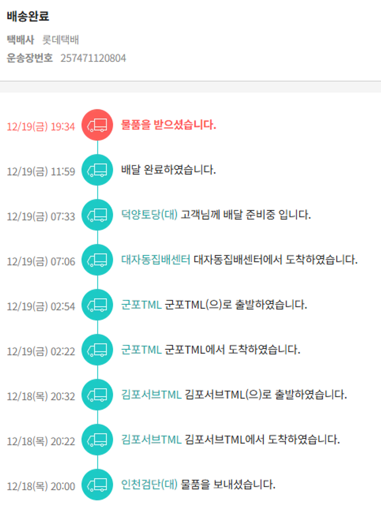 가격상승분 14,120원, 100원 미만 지원금 60원, SSG 머니 12,900포인트, 결제 수수료 11,240원, 기타 사업비는 행복나눔재단이 부담했습니다. (기부후기 발송시점에 최종 업데이트 됩니다.) 상품 주문 건 중 품절 발생하여 2025-12-17 재주문하였습니다. 실제 쇼핑몰에서 확인되는 배송현황을 캡처한 내용입니다. 실시간 자료와는 차이가 있을 수 있습니다.