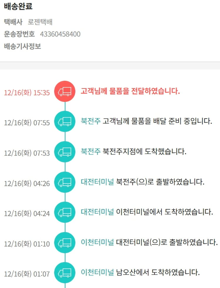 기부자님이 사용한 기부포인트 3,000원, 물품배송비 15,000원, 가격상승분 1,570원, 100원 미만 지원금 21원, 결제 수수료 10,724원, 기타 사업비는 행복나눔재단이 부담했습니다. (기부후기 발송시점에 최종 업데이트 됩니다.) 실제 쇼핑몰에서 확인되는 배송현황을 캡처한 내용입니다. 실시간 자료와는 차이가 있을 수 있습니다.
