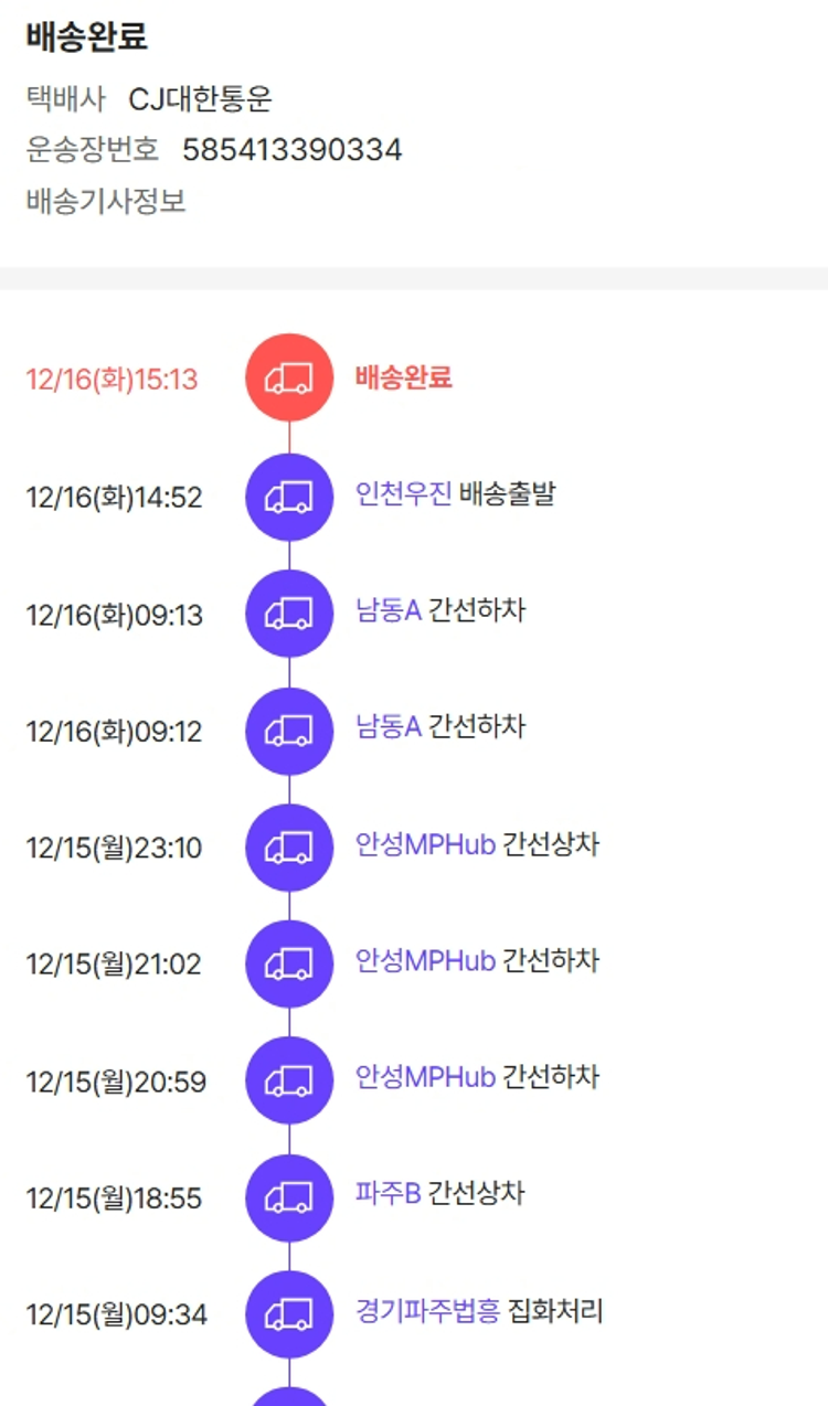 기부자님이 사용한 기부포인트 4,100원, 결제 수수료 10,813원, 기타 사업비는 행복나눔재단이 부담했습니다. (기부후기 발송시점에 최종 업데이트 됩니다.) 실제 쇼핑몰에서 확인되는 배송현황을 캡처한 내용입니다. 실시간 자료와는 차이가 있을 수 있습니다.