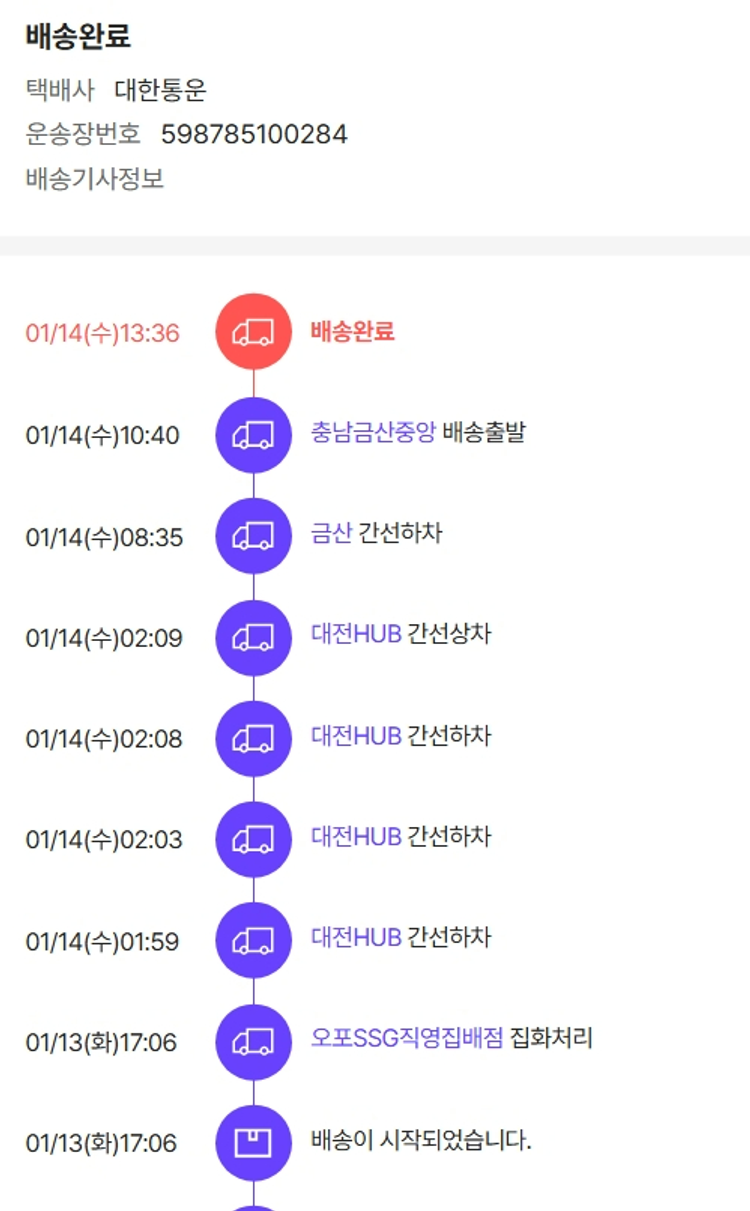 가격상승분 771원, 100원 미만 지원금 23원, 기타 사업비는 행복나눔재단이 부담했습니다. (기부후기 발송시점에 최종 업데이트 됩니다.) 상품 주문 건 중 품절 발생하여 2026-01-13 재주문하였습니다. 실제 쇼핑몰에서 확인되는 배송현황을 캡처한 내용입니다. 실시간 자료와는 차이가 있을 수 있습니다.