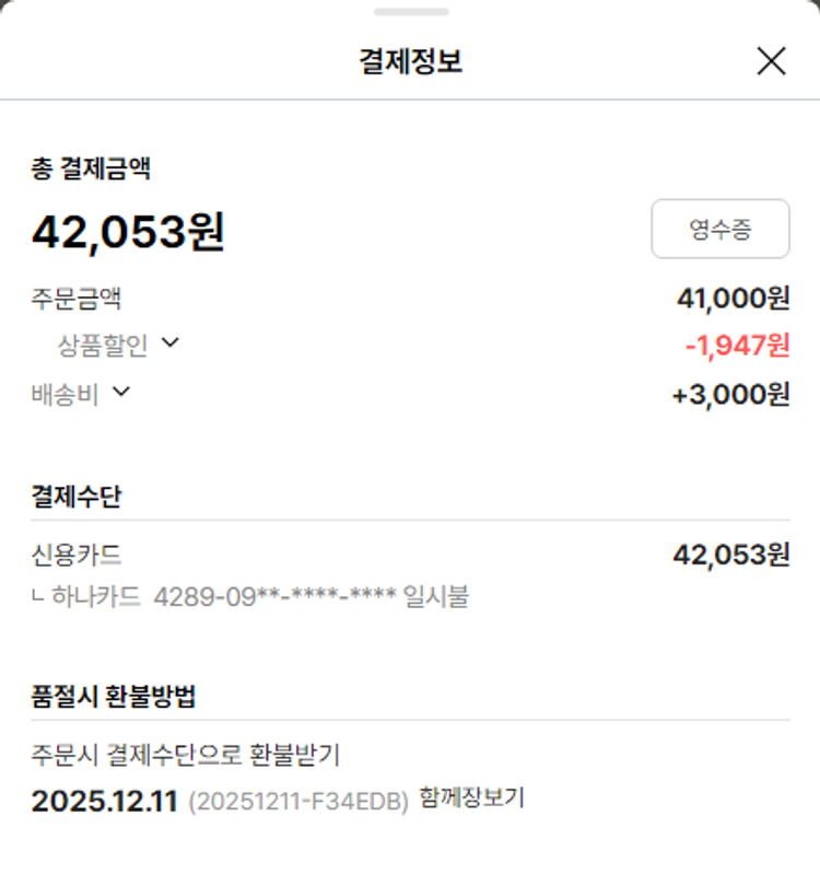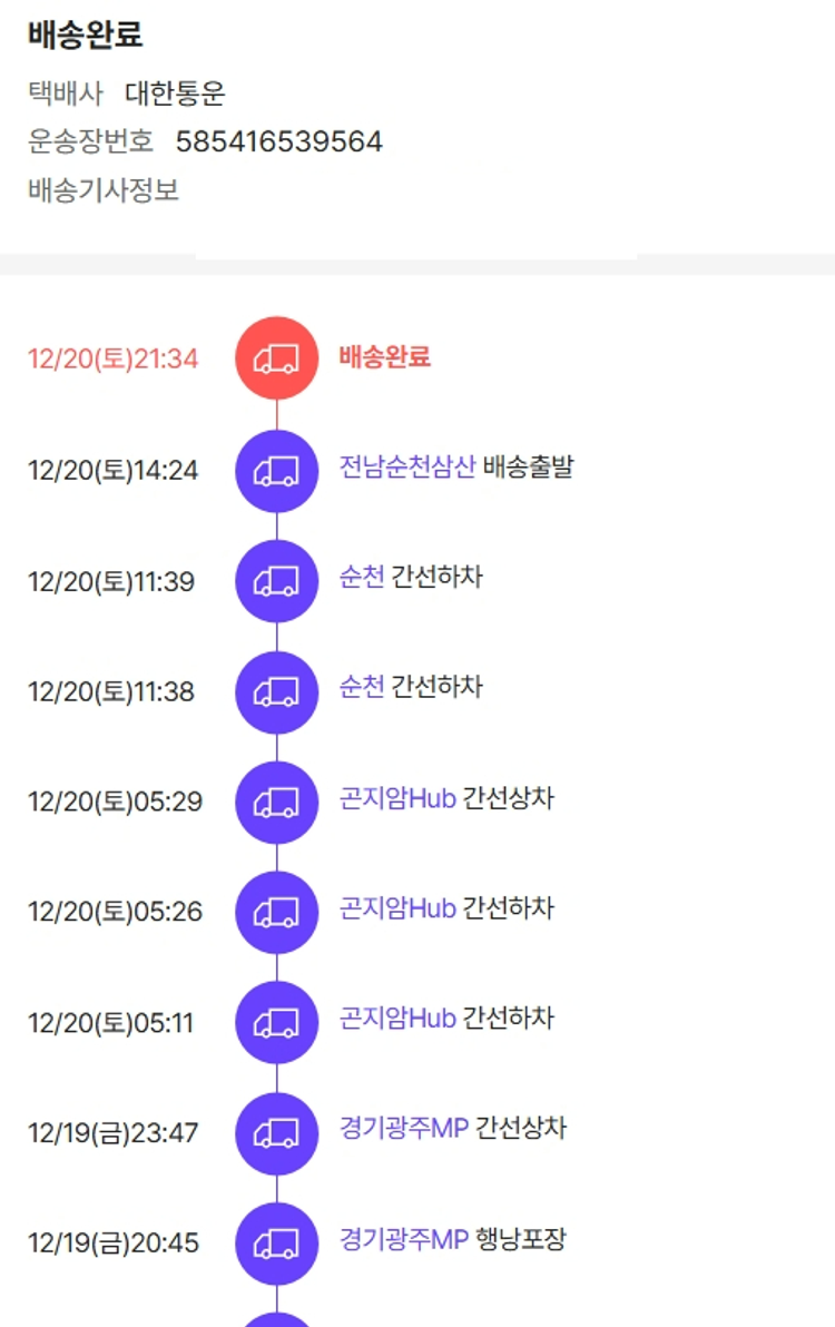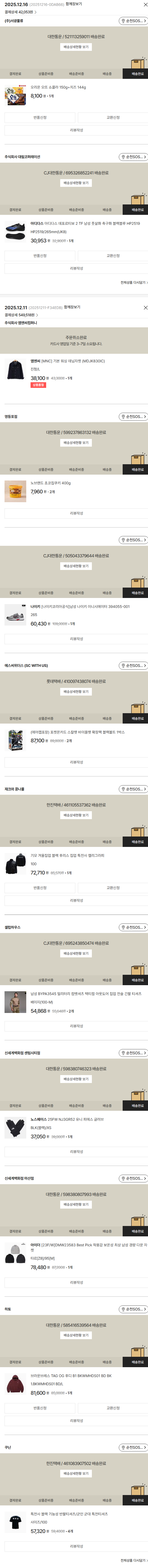 물품배송비 15,000원, 가격상승분 4,283원, 100원 미만 지원금 88원, 기타 사업비는 행복나눔재단이 부담했습니다. (기부후기 발송시점에 최종 업데이트 됩니다.) 상품 주문 건 중 품절 발생하여 2025-12-16 재주문하였습니다. 실제 쇼핑몰에서 확인되는 배송현황을 캡처한 내용입니다. 실시간 자료와는 차이가 있을 수 있습니다.