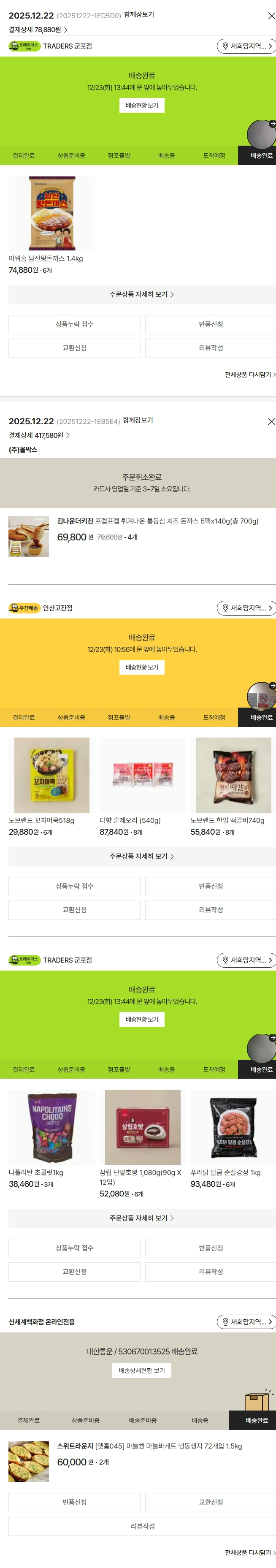 기부자님이 사용한 기부포인트 6,100원, 물품배송비 4,000원, 가격상승분 9,592원, 100원 미만 지원금 68원, 결제 수수료 11,577원, 기타 사업비는 행복나눔재단이 부담했습니다. (기부후기 발송시점에 최종 업데이트 됩니다.) 상품 주문 건 중 품절 발생하여 2025-12-22 재주문하였습니다. 실제 쇼핑몰에서 확인되는 배송현황을 캡처한 내용입니다. 실시간 자료와는 차이가 있을 수 있습니다.