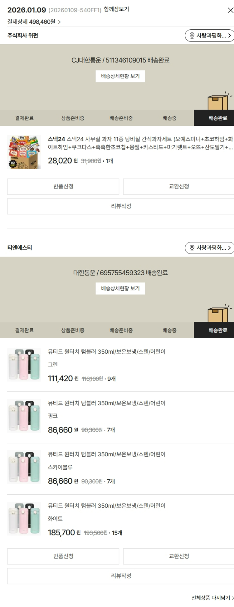 기부자님이 사용한 기부포인트 14,000원, 가격상승분 10,920원, 100원 미만 지원금 40원, 결제 수수료 10,479원, 기타 사업비는 행복나눔재단이 부담했습니다. (기부후기 발송시점에 최종 업데이트 됩니다.) 실제 쇼핑몰에서 확인되는 배송현황을 캡처한 내용입니다. 실시간 자료와는 차이가 있을 수 있습니다.