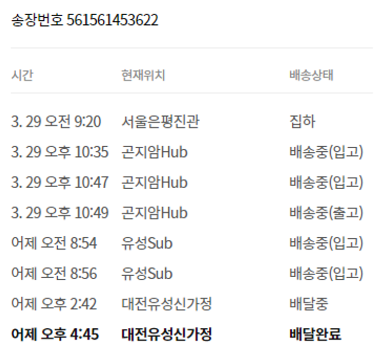 기부자님이 사용한 기부포인트 24,000원, 가격상승분 9,100원, 결제 수수료 10,070원, 기타 사업비는 행복나눔재단이 부담했습니다. (기부후기 발송시점에 최종 업데이트 됩니다.) 실제 쇼핑몰에서 확인되는 배송현황을 캡처한 내용입니다. 실시간 자료와는 차이가 있을 수 있습니다.