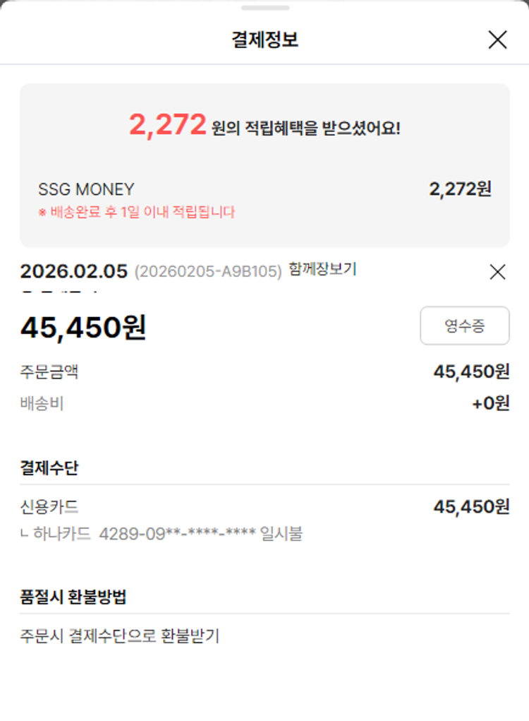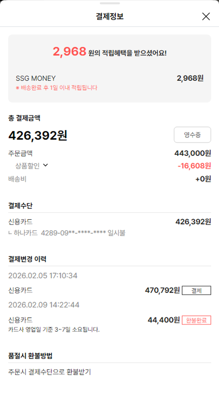 가격상승분 2,922원, 100원 미만 지원금 20원, 기타 사업비는 행복나눔재단이 부담했습니다. (기부후기 발송시점에 최종 업데이트 됩니다.) 상품 주문 건 중 품절 발생하여 2026-02-09 재주문하였습니다. 실제 쇼핑몰에서 확인되는 배송현황을 캡처한 내용입니다. 실시간 자료와는 차이가 있을 수 있습니다.