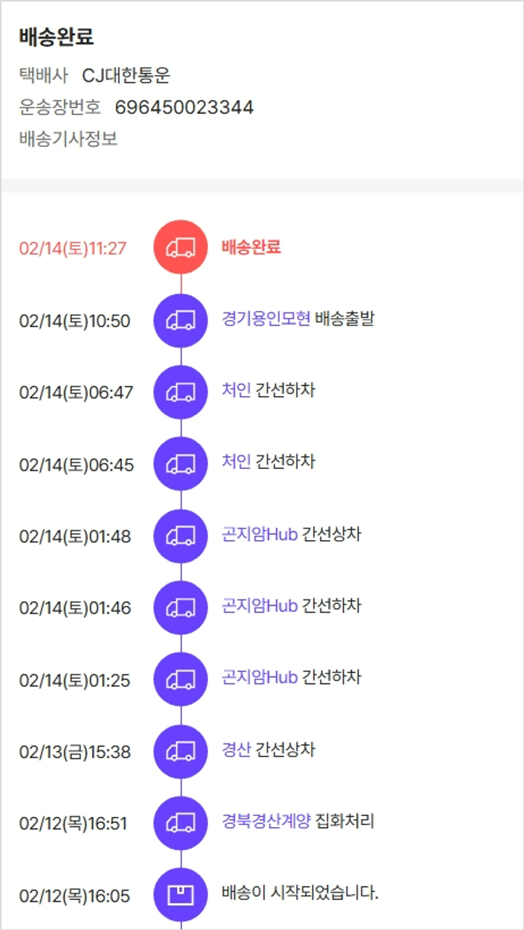 기부자님이 사용한 기부포인트 3,000원, 물품배송비 3,000원, 결제 수수료 11,146원, 기타 사업비는 행복나눔재단이 부담했습니다. (기부후기 발송시점에 최종 업데이트 됩니다.) 실제 쇼핑몰에서 확인되는 배송현황을 캡처한 내용입니다. 실시간 자료와는 차이가 있을 수 있습니다.
