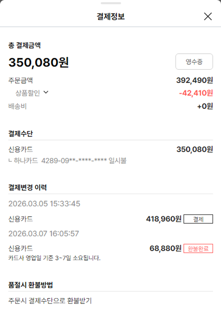 기부자님이 사용한 기부포인트 9,000원, 가격상승분 7,220원, 100원 미만 지원금 80원, 결제 수수료 10,115원, 기타 사업비는 행복나눔재단이 부담했습니다. (기부후기 발송시점에 최종 업데이트 됩니다.) 상품 주문 건 중 품절 발생하여 2026-03-09 재주문하였습니다. 실제 쇼핑몰에서 확인되는 배송현황을 캡처한 내용입니다. 실시간 자료와는 차이가 있을 수 있습니다.