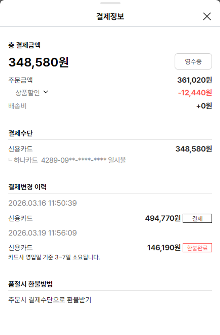 기부자님이 사용한 기부포인트 1,000원, 가격상승분 4,290원, 100원 미만 지원금 30원, 결제 수수료 10,507원, 기타 사업비는 행복나눔재단이 부담했습니다. (기부후기 발송시점에 최종 업데이트 됩니다.) 상품 주문 건 중 품절 발생하여 2026-03-19 재주문하였습니다. 실제 쇼핑몰에서 확인되는 배송현황을 캡처한 내용입니다. 실시간 자료와는 차이가 있을 수 있습니다.
